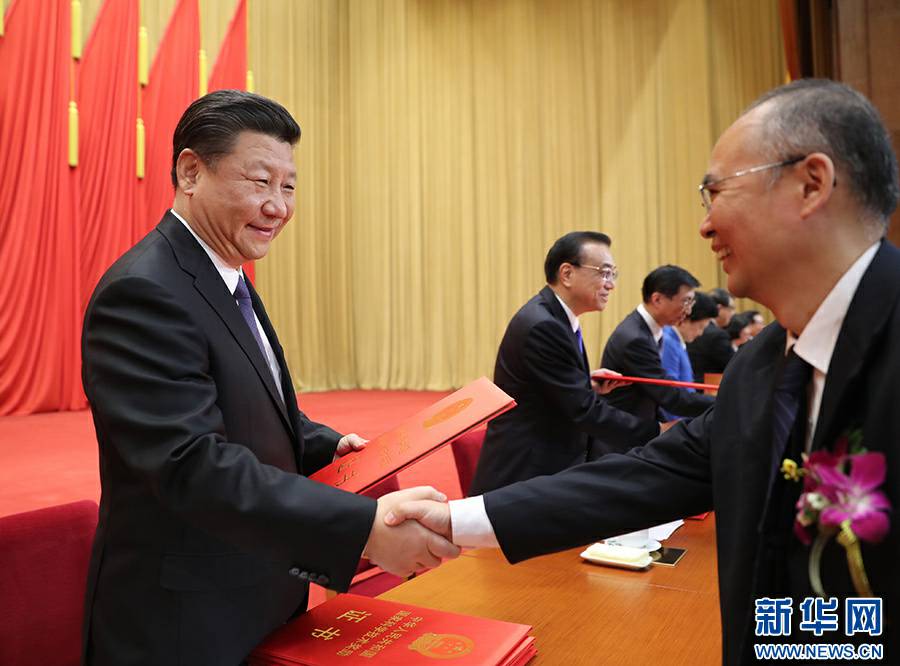 1月8日,国家科学技术奖励大会在北京人民大会堂隆重举行。习近平等党和国家领导人向获奖代表颁奖。 新华社记者 鞠鹏 摄