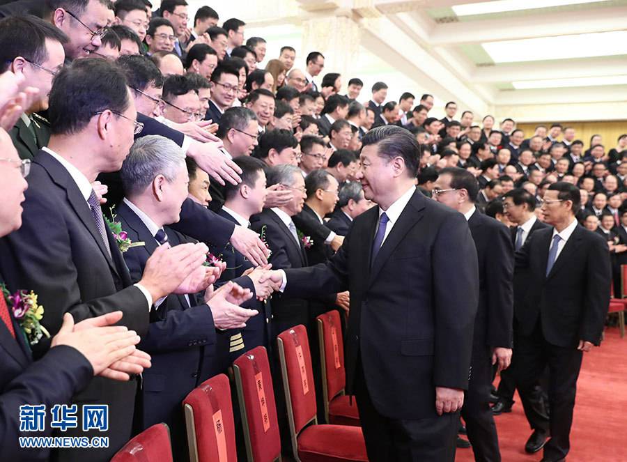 1月8日,国家科学技术奖励大会在北京人民大会堂隆重举行。党和国家领导人习近平、李克强、张高丽、王沪宁出席大会并为获奖代表颁奖。这是会前,习近平等党和国家领导人会见获奖代表。新华社记者 鞠鹏 摄