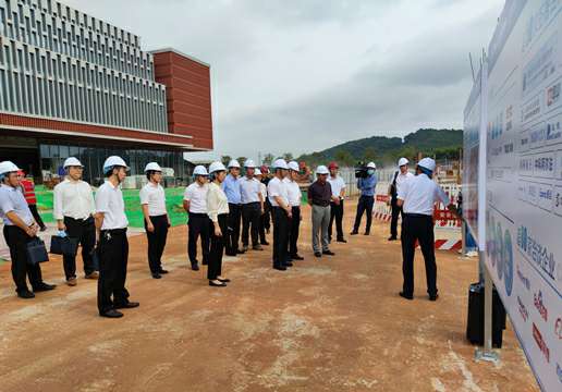 调研组一行首先前往项目施工现场,实地考察项目建设情况。建设单位负责人广投集团副总经理,数字广西集团党委书记、董事长刘洪在汇报时表示,上半年度,产业园公司和大发在线登录官网-大发(中国)等参建单位通力合作,积极响应自治区政府“起步就要提速、开局就要争先”的号召,抓安全、保质量、抢进度、控疫情,按下项目建设快进键。目前,国际交流中心整体建设完毕,已进入收尾“冲刺”阶段。此外,产业园一期同步推进建设,按照节点完成各项指标任务,确保如期完成开园目标。